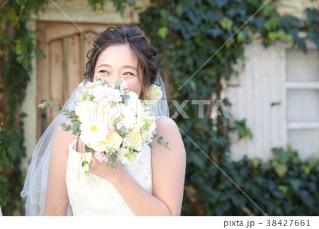 若い可愛いウェディング ブーケを持つ花嫁 1人のストックフォトや画像を多数ご用意 Istock